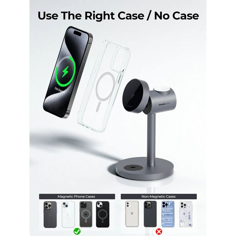 Aukey Magfusion 3-In-1 G Magnetic Wireless Charger 15W For Samsung Watch - Grey