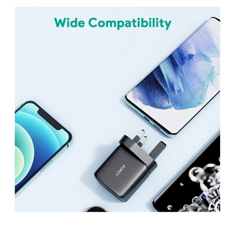 The Aukey 30W PD Wall Charger PA-R1P is your go-to companion for charging your handheld devices with ease. This charger is compatible with most handheld devices, including Samsung Galaxy phones, Switch, earbuds, smartwatches, and more. With its 30W USB-C fast charging capabilities powered by Power Delivery 3.0 with PPS, you can quickly charge your devices.
