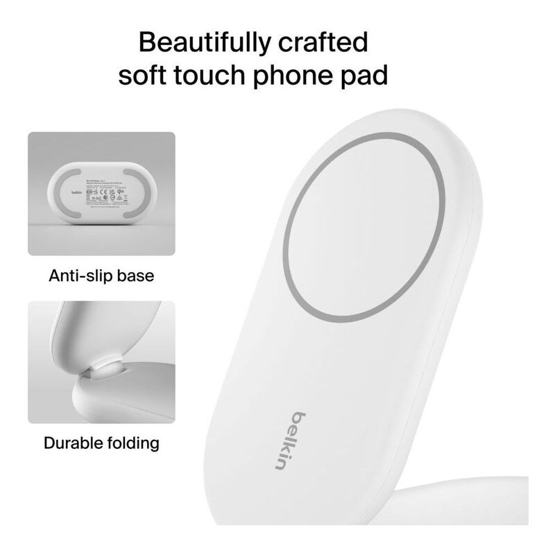 Belkin Boostcharge 2in1 Wireless Charging Stand With Magnetic Qi2 15W - White