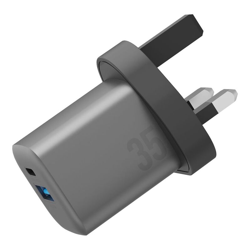 Energea AmpCharge GaN 35 1C1A PD/PPS/QC 3.0 Wall Charger 35W (Uk) - Gunmetal