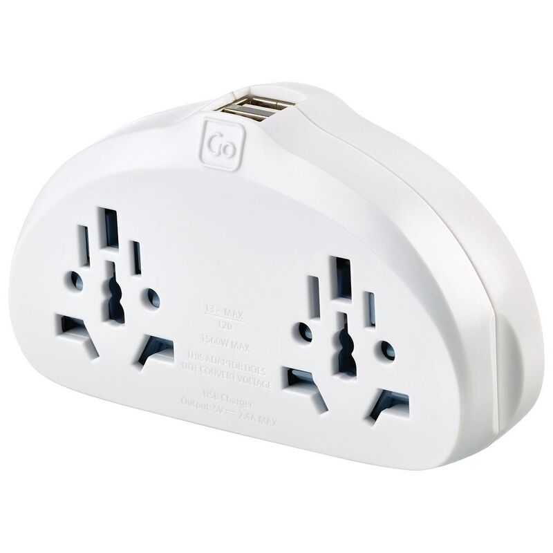 - Earthed / Grounded duo adaptor with twin 2.4A USB ports for worldwide travellers to The Americas