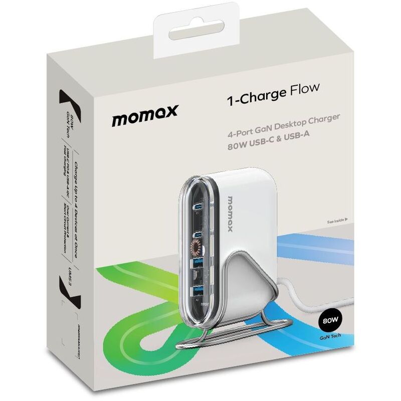 Momax 1-Charger Flow PD 80W 4 Ports Gan Desktop Charger - White