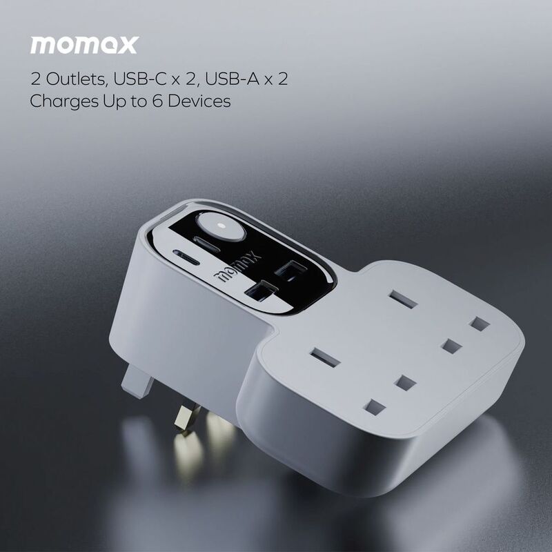 Momax 1-Charger Work Flow T-Shaped Extention 2 Socket With USB - White