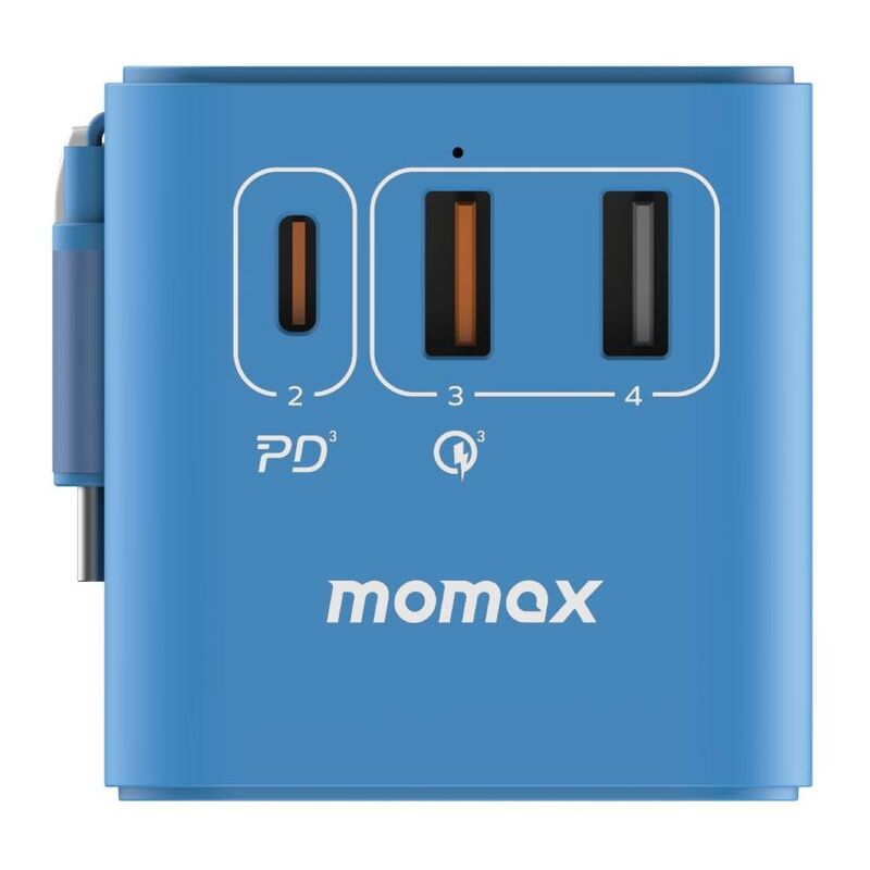Momax 1-World 70W GaN 3 Port With Built-In USB-C Cable AC Travel Adaptor - Blue