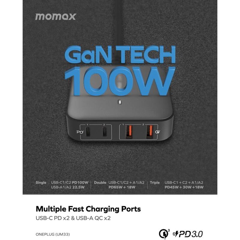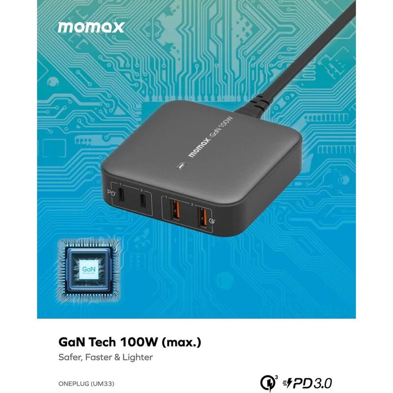 Momax Oneplug 100W 4-Port GaN Desktop Charger - Black