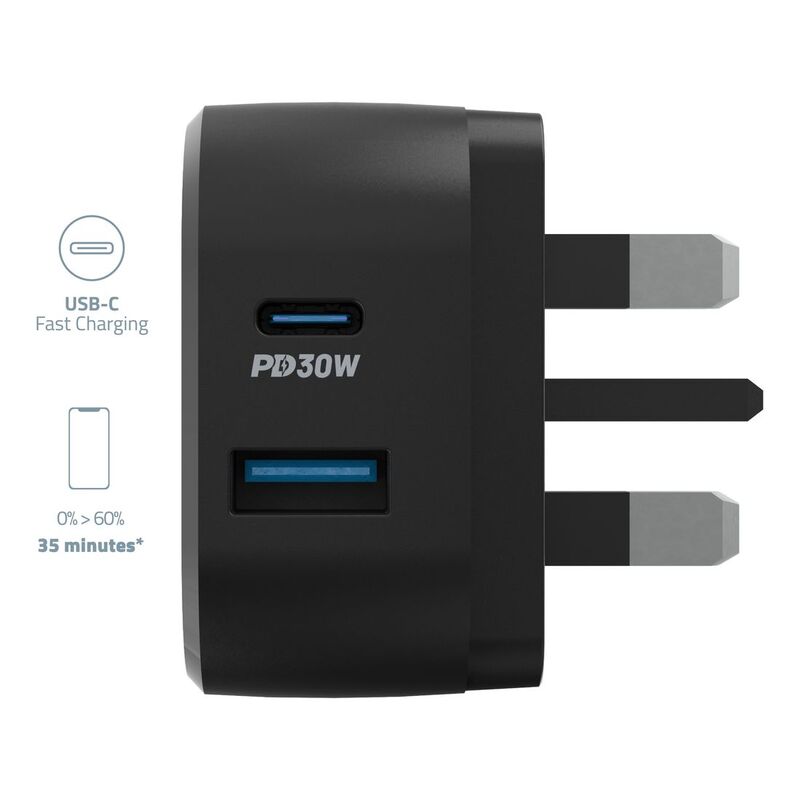 Powerology Wall Charger PD 30W + USB-A 18W - Black