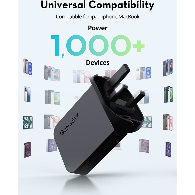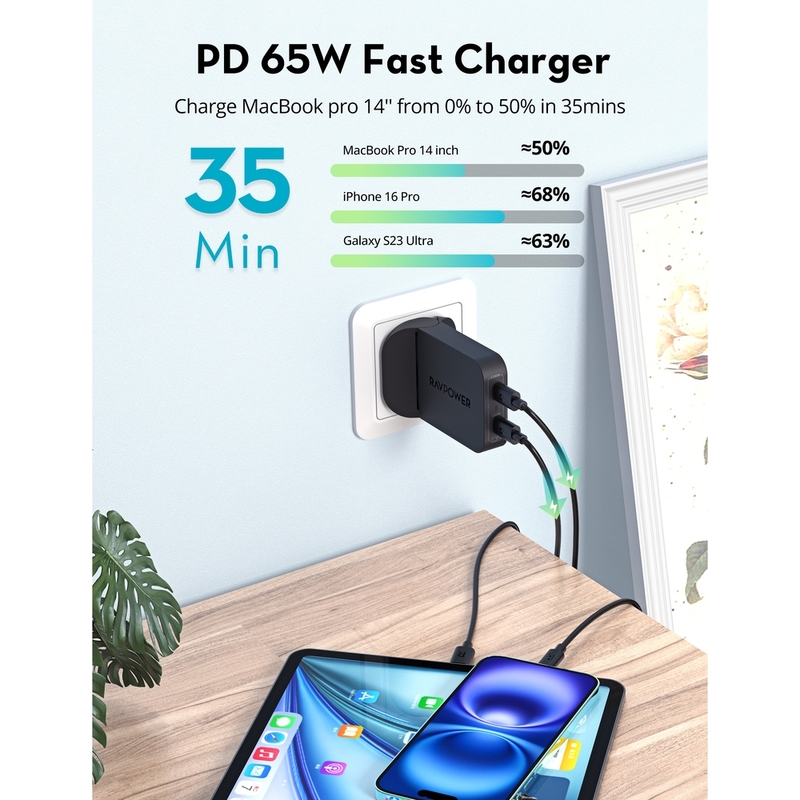 RavPower PC1079 Foldable Plug Wall Charger GaN 65W 2C - Black