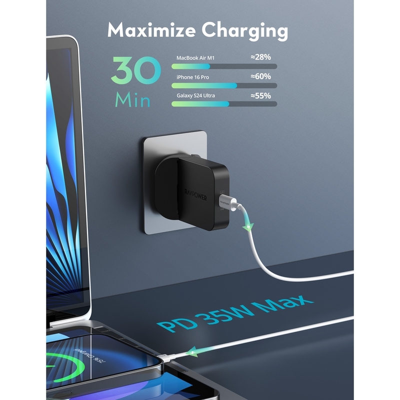 RavPower PC1082 PD Pioneer 35W USB-C Foldable Wall Charger - Black