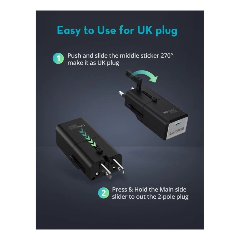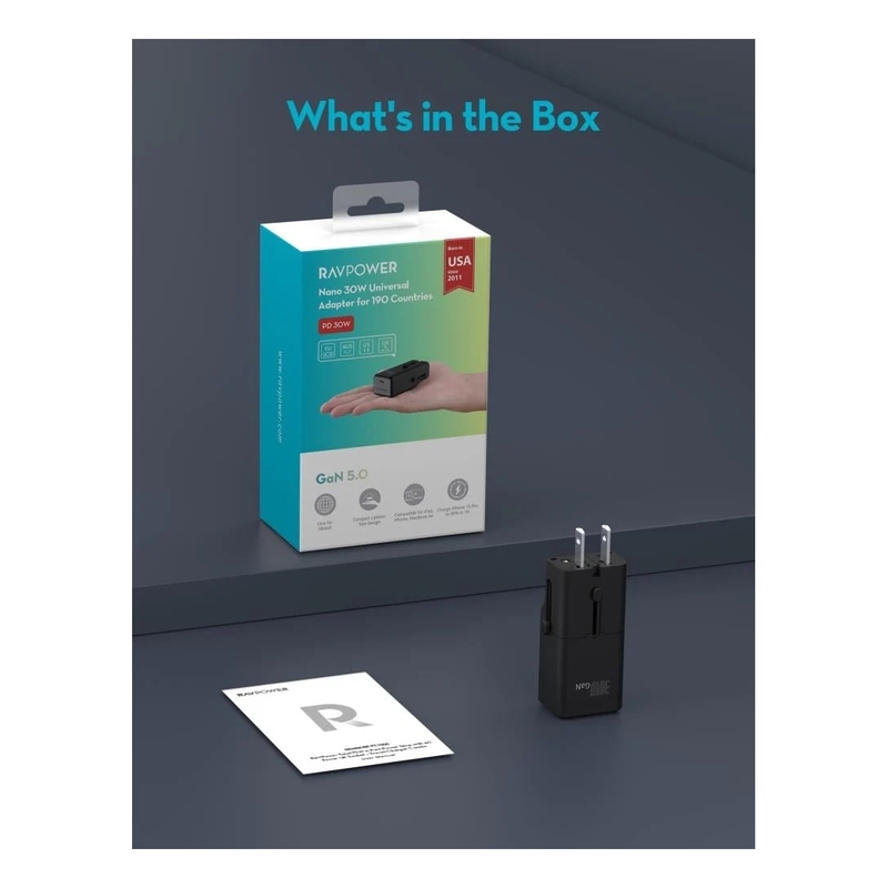 RAVPower RP-PC1060 Nano 1C Port PD 30W Travel Adpater - Black
