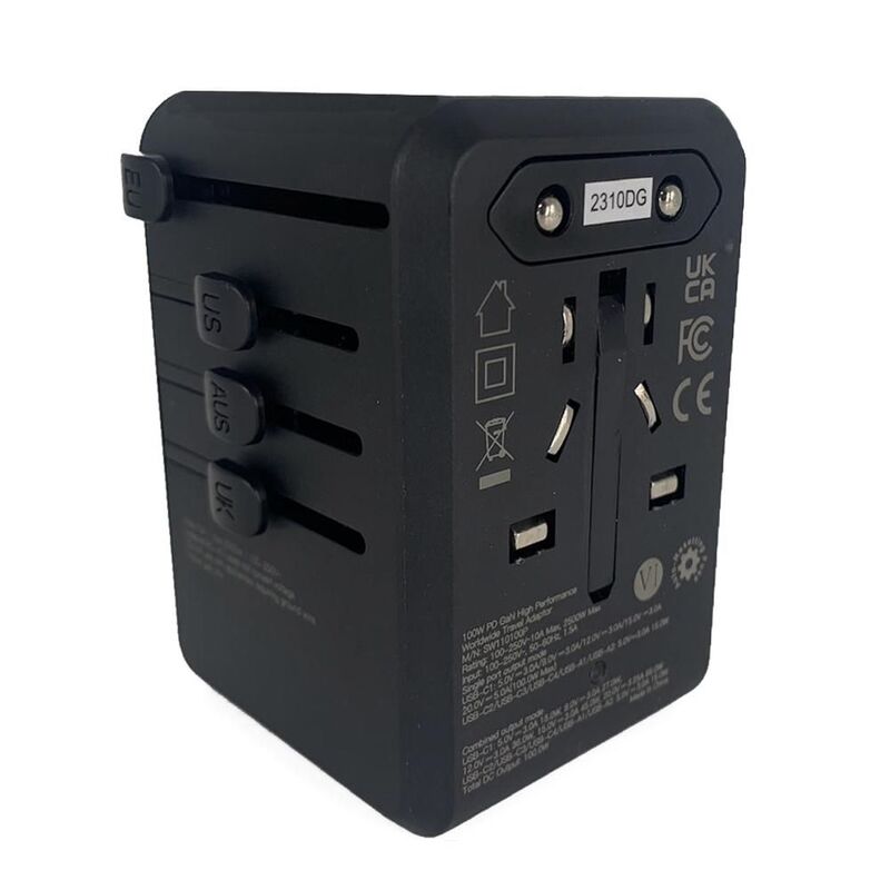 - World's First Travel Adaptor with 6 USB ports (USB-C PD x 4 + USB-A AC x 2 Output) , capable of charging up to 7 devices with a power output of up to 100W
