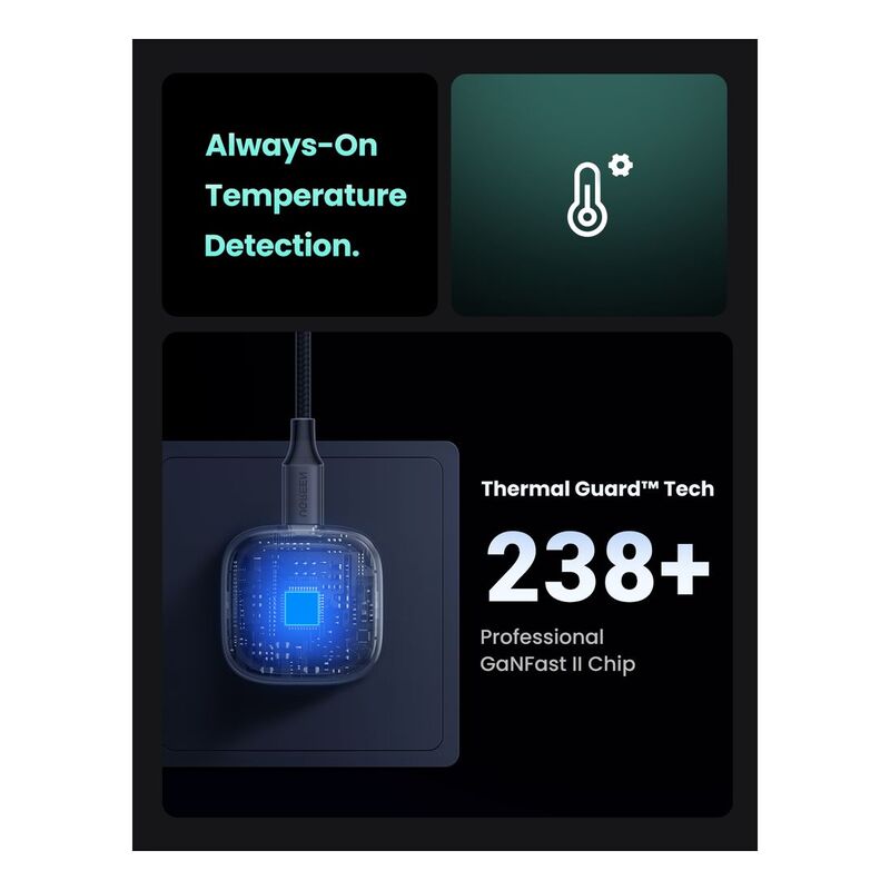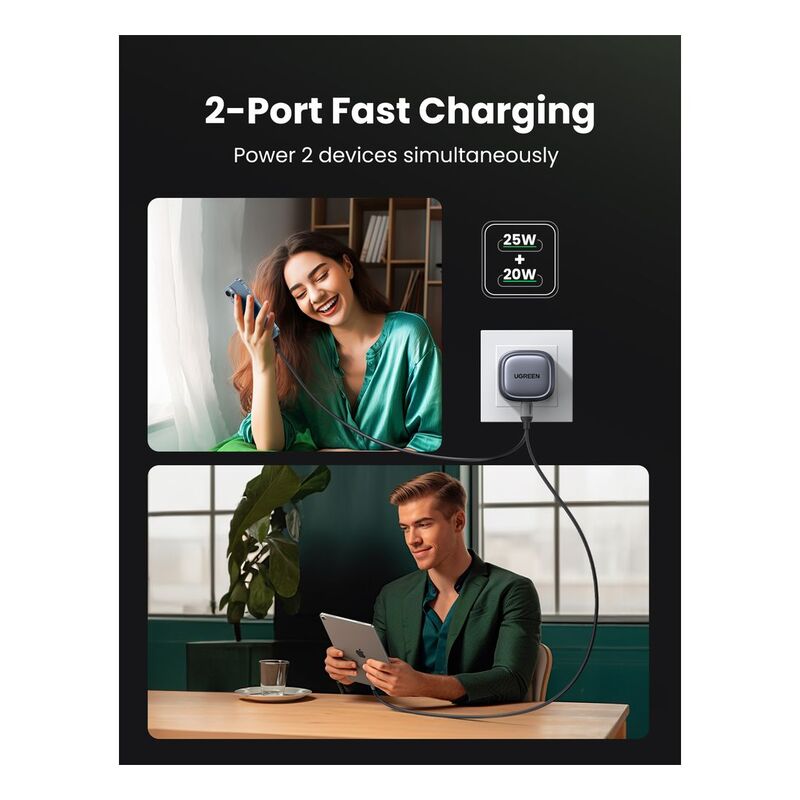 - One Charger, All Devices: By identifying the connected devices and protocol, UGREEN dual usb c charger could intelligently distribute the required current for all your devices to ensure the fastest charging speed