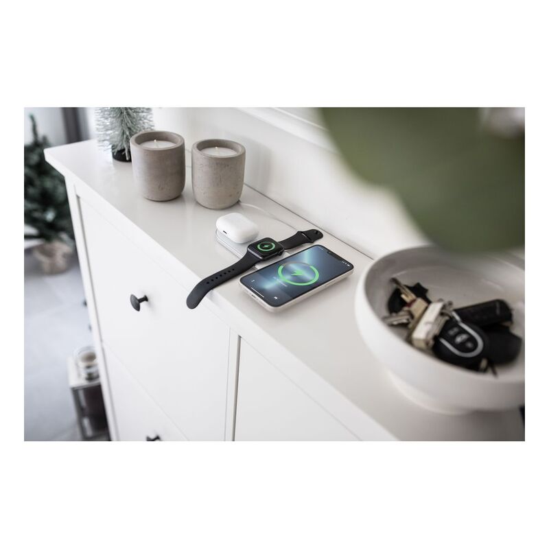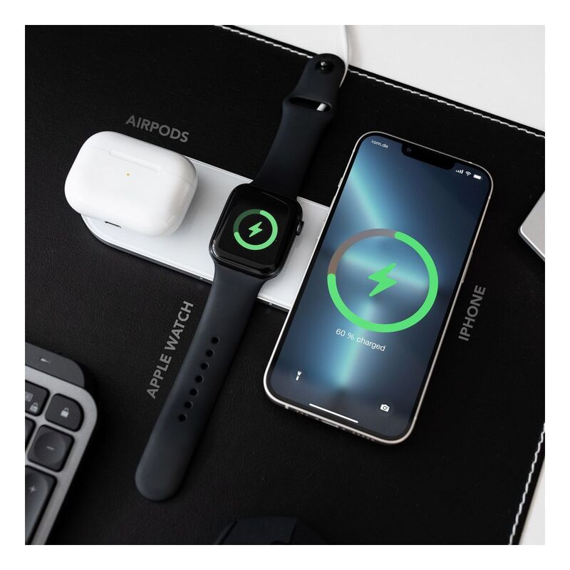 - 3IN1 CHARGING STATION With Aura Home, you can charge up to three devices at the same time. The areas on the left and right allow you to charge fast with up to 15 watts. The charging socket in the middle charges your Apple Watch with 5 watts.