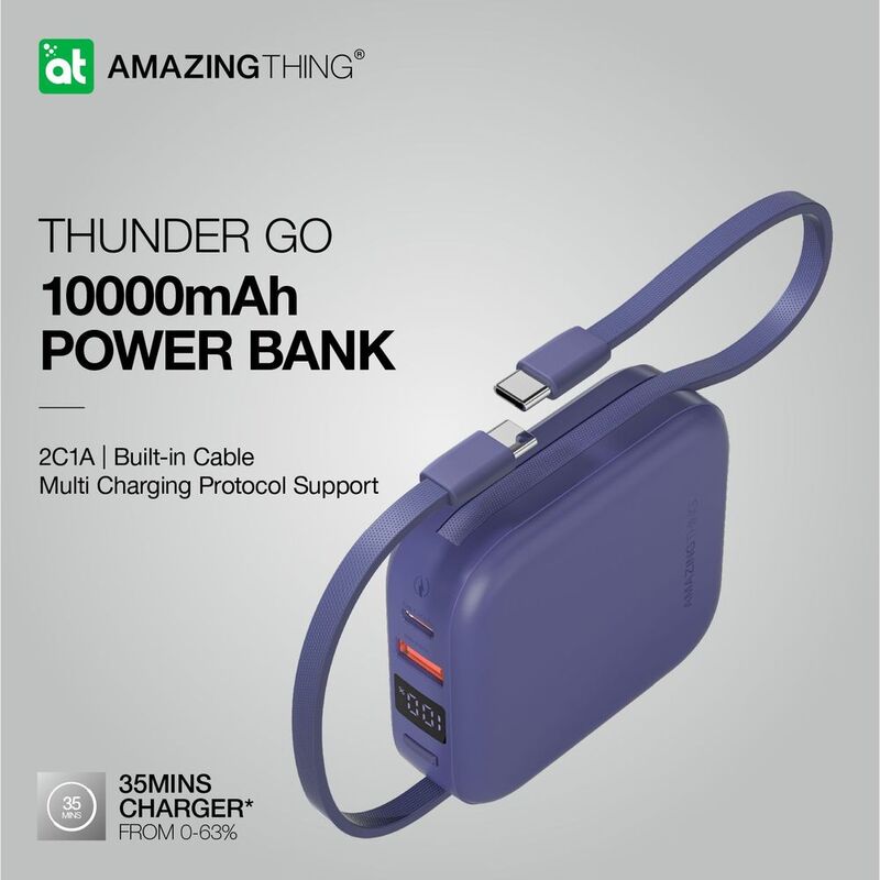 - Stay charged and connected with the Amazingthing Thudergo 10,000 mAh Power Bank.
