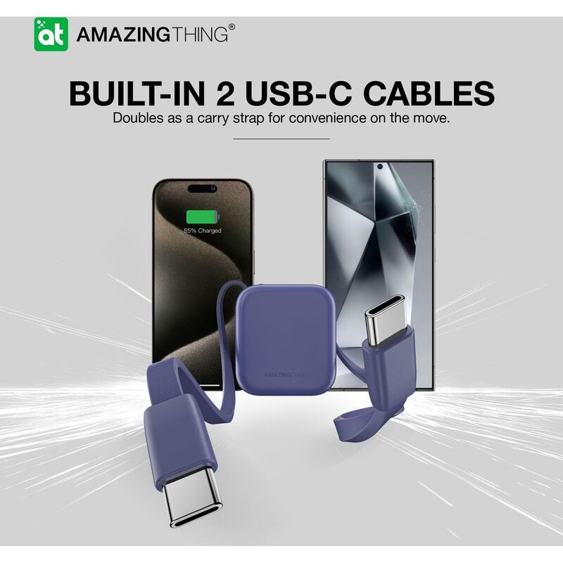 AmazingThing Thunder Go 10000mAh Power Bank With Built-In 2 USB-C Cables - Blue