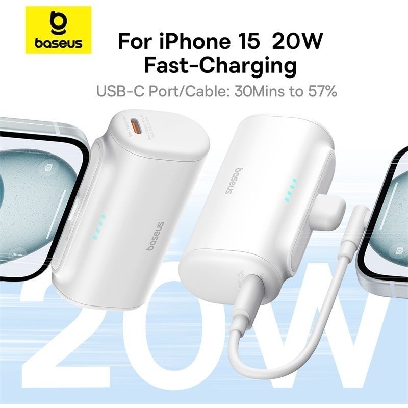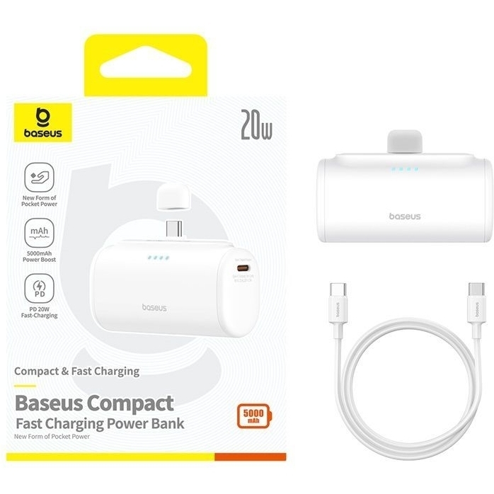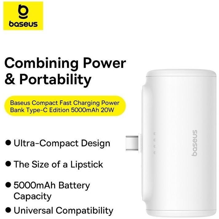 Baseus Compact Fast Charging Power Bank Type-C 5000mAh 20W - Moon White