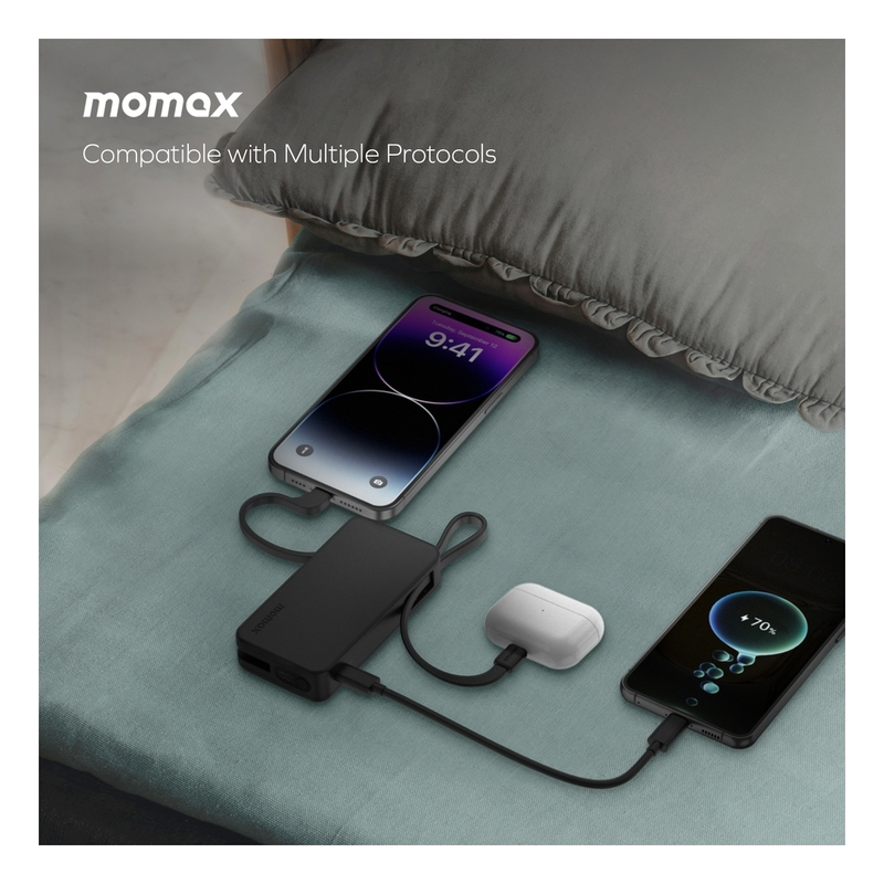 - With 2 built-in charging cables: 1 USB-C and 1 Lightning