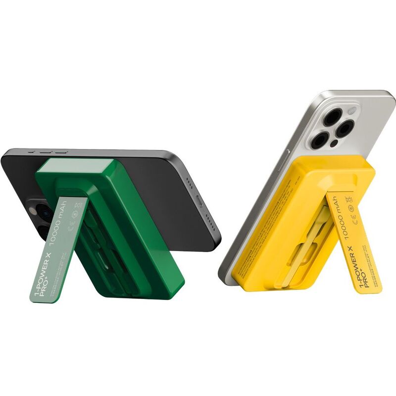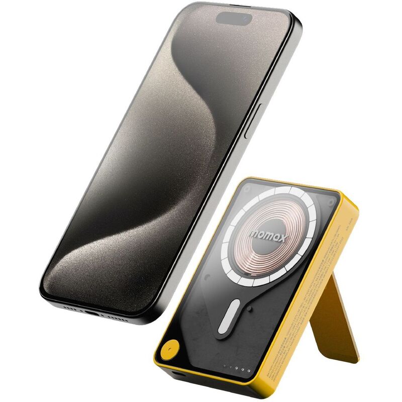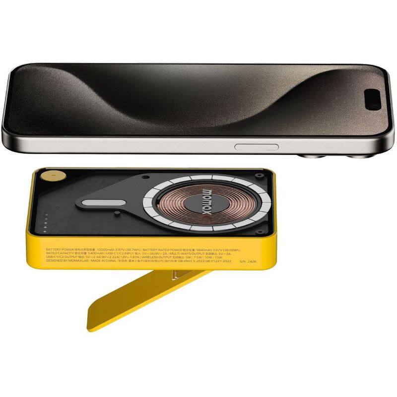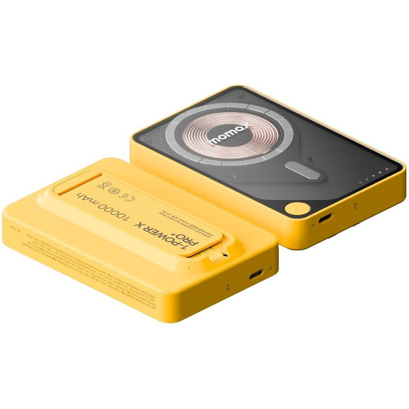 Momax 1-Power X Pro+ 10000mAh Magnetic Wireless Power Bank With Stand And Built-In USB-C Cable - Yellow