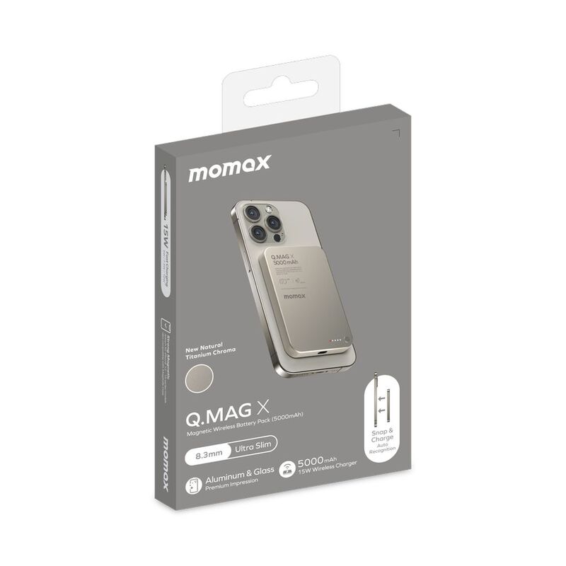Momax Q.Mag X 5000mAh Gen2 15W Ultra Slim Magsafe Wireless Power Bank - Titanium