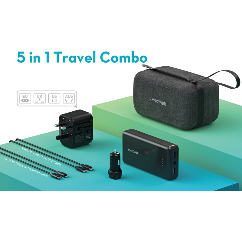 RavPower PB1232 5 In 1 Travel Combo With 20000mAh - Black