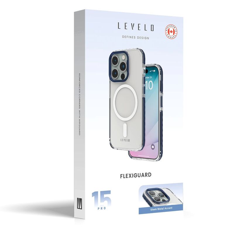 The Levelo MagSafe FlexiGuard Transparent Case combines reinforced corners, shock-proof edges, a sleek metal accent, high transparency, and an anti-scratch coating to provide protection and style for devices with MagSafe compatibility. As with any case, proper installation and careful usage are important to ensure your device remains effectively protected.