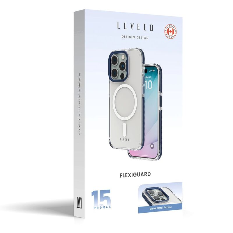 The Levelo MagSafe FlexiGuard Transparent Case combines reinforced corners, shock-proof edges, a sleek metal accent, high transparency, and an anti-scratch coating to provide protection and style for devices with MagSafe compatibility. As with any case, proper installation and careful usage are important to ensure your device remains effectively protected.