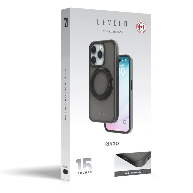 Levelo Magsafe Ringo Multi-Functional Kickstand Case For iPhone 15 Pro Max - Black