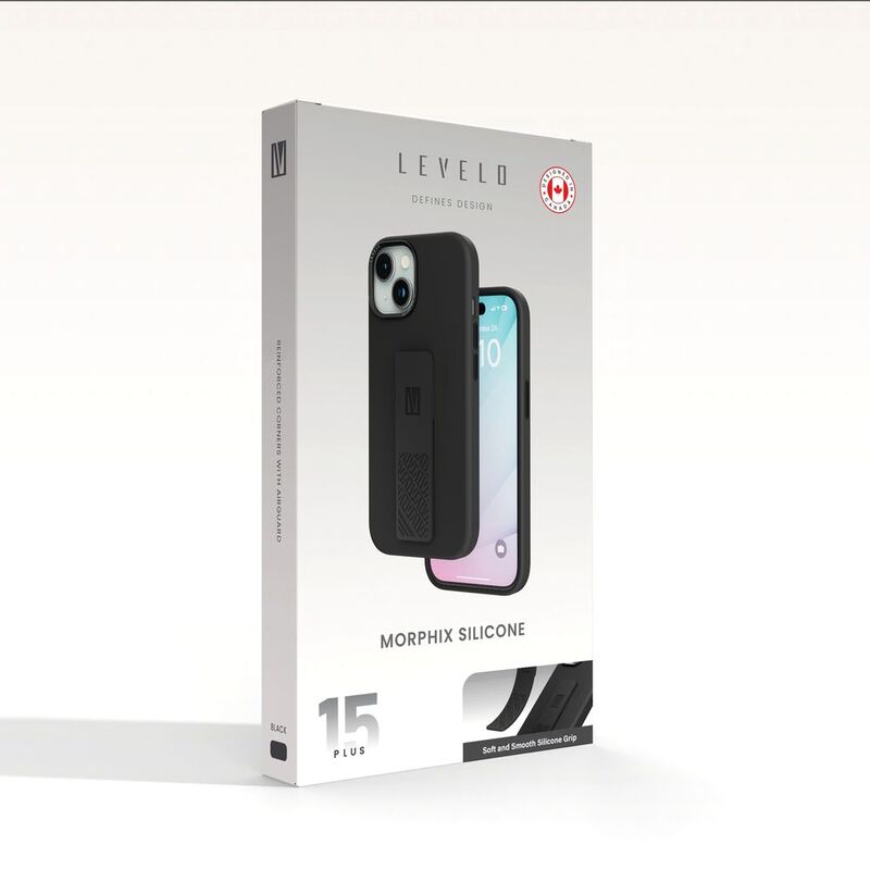 Levelo Morphix Silicone Case With Silicone Grip For iPhone 15 Plus - Black