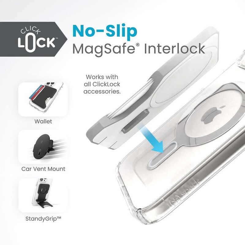 - ClickLock™ Interlock MagSafe® enhancer designed to work with Speck MagSafe® products to lock your phone into place