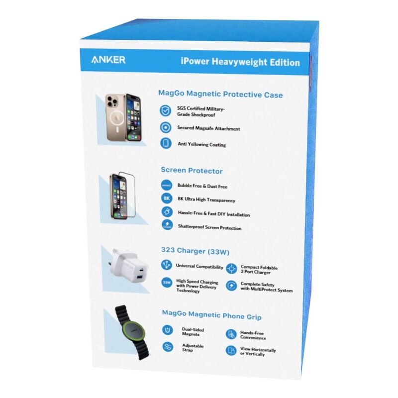 Anker iPower Bundle Heavy Weight Edition - iPhone 16 Pro Max (33W Charger + Screen Protector + Cover + Grip)