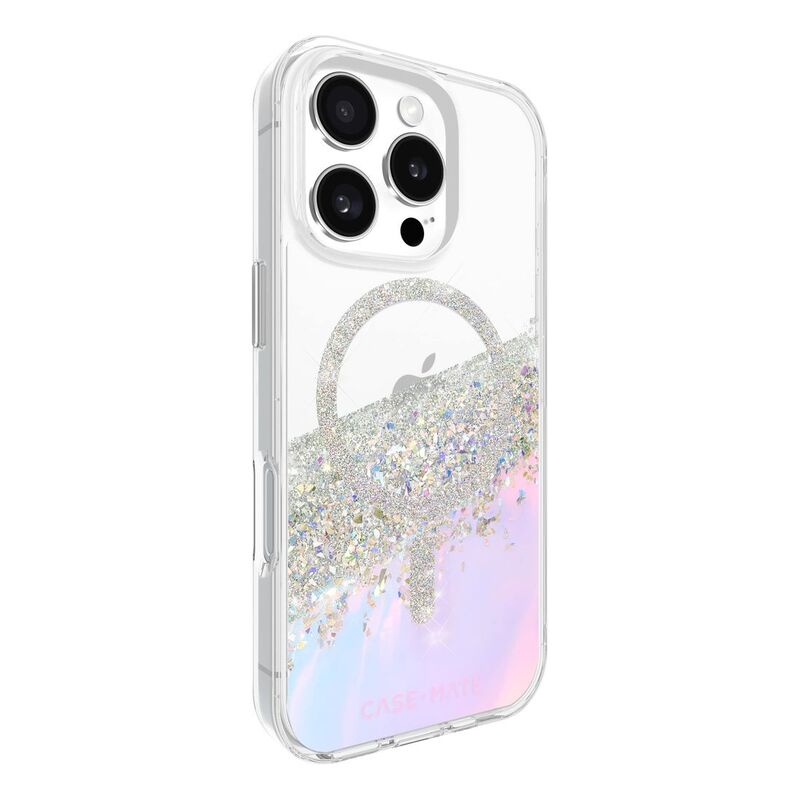 Our Holographic Karat case for the iPhone 16 Pro features a splash of genuine mother of pearl elements and silver foil flakes encased in clear resin. No two cases are alike, so you’ll have your hands on a one of a kind piece. This case also includes built-in magnets that allow you to simply snap on your MagSafe charger and accessories for the fastest wireless charging experience.