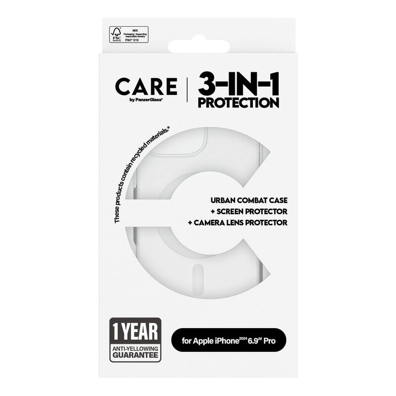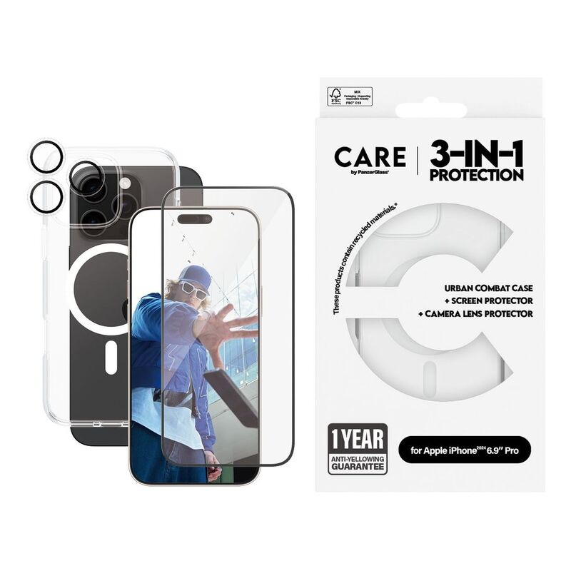 Panzer Glass Care iPhone 16 Pro Max - 3-In-1 Bundle - Flagship - Uwf Screen Protector + MagSafe Case + Hoops
