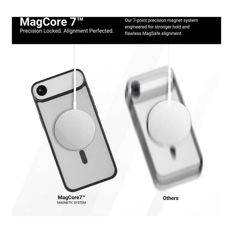 Transparent Optical-Grade PC Back + Colored TPU Frame Embedded N52 Magnet for ultra-strong MagSafe performance Dual-layer bumper corners for enhanced impact absorption Precision-engineered lens ring for camera protection Transparent, high-clarity back that resists yellowing and scratching