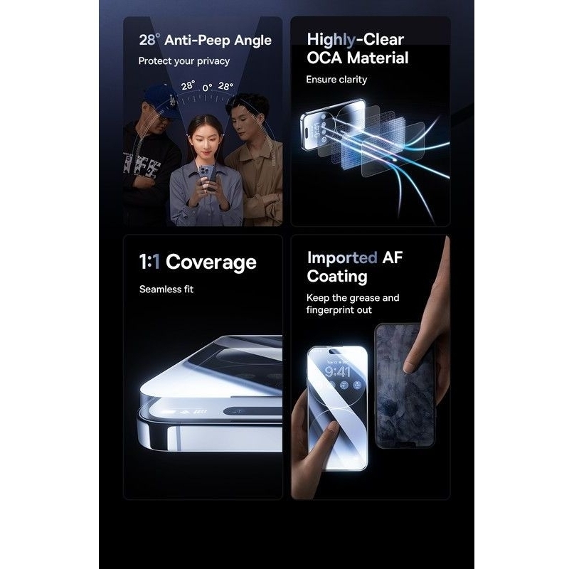 Baseus Sapphire Full-Coverage Privacy Protection Glass Screen Protector for iPhone 16 Pro Max