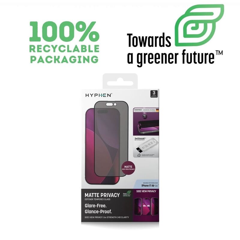 HYPHEN DEFENDR Matte Privacy Tempered Glass with Applicator - iPhone 17 Air - 6.6" with Self Applicator Kit