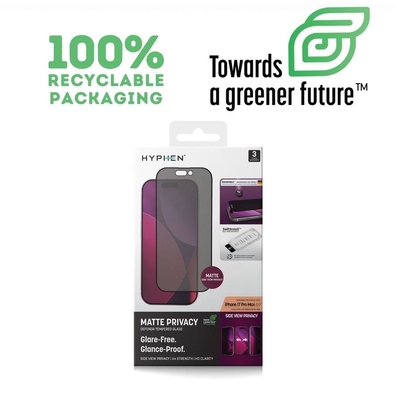 HYPHEN DEFENDR Matte Privacy Tempered Glass with Applicator - iPhone 17 Pro Max - 6.9" with Self Applicator Kit