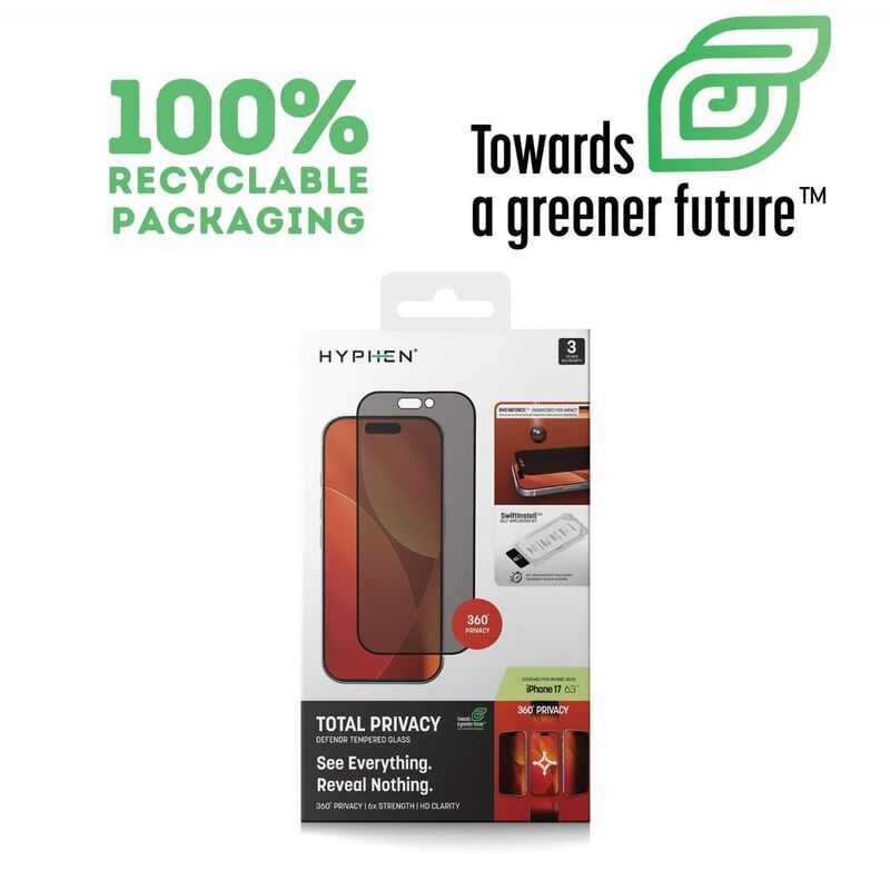 HYPHEN DEFENDR Privacy Tempered Glass with Applicator - iPhone 17 - 6.3" with Self Applicator Kit