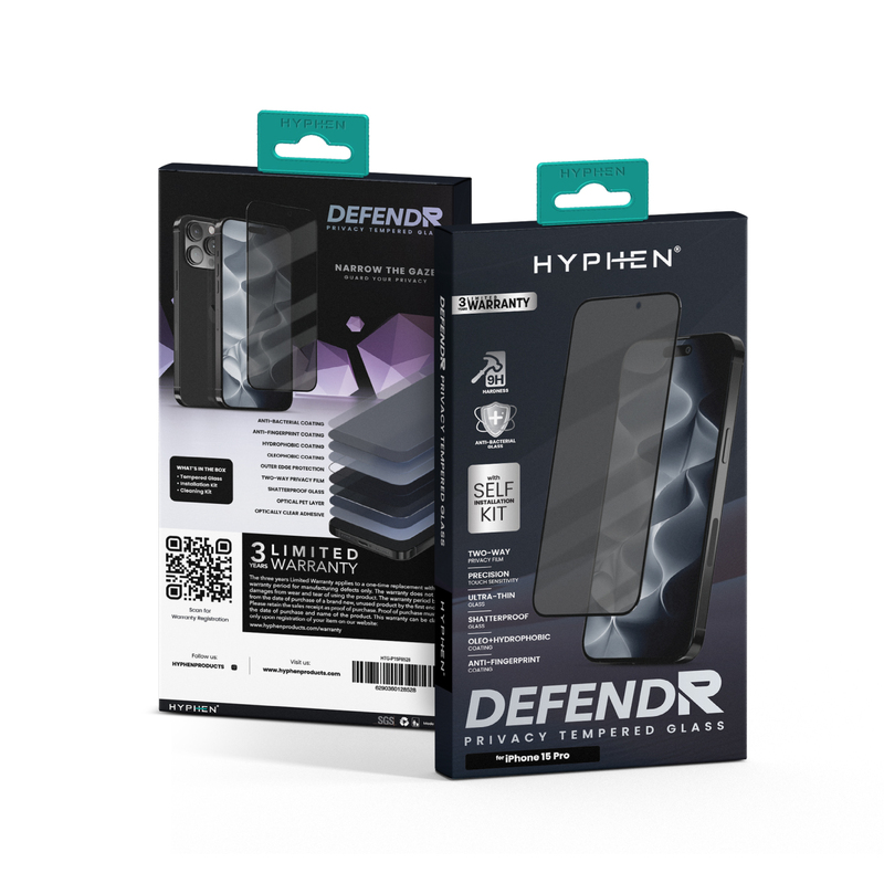 HYPHEN Defendr Privacy Tempered Glass with Applicator for iPhone 15 Pro - 6.1-Inch
