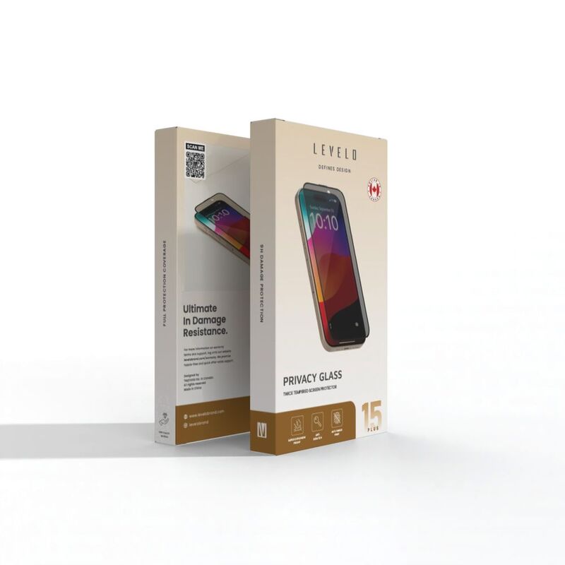 Levelo Full Screen Privacy Twice-Tempered Glass For iPhone 15 Plus - Black