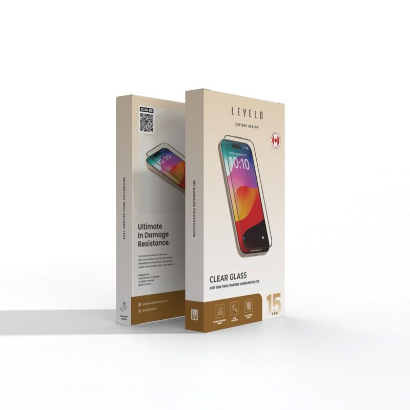 Levelo Full Screen Soft Edge Twice-Tempered Glass For iPhone 15 Pro - Black