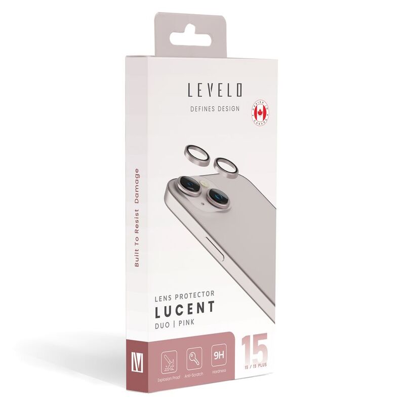 Levelo Lucent Duo 9H Hardness Camera Lens Protector For iPhone 15 / 15 Plus- Pink