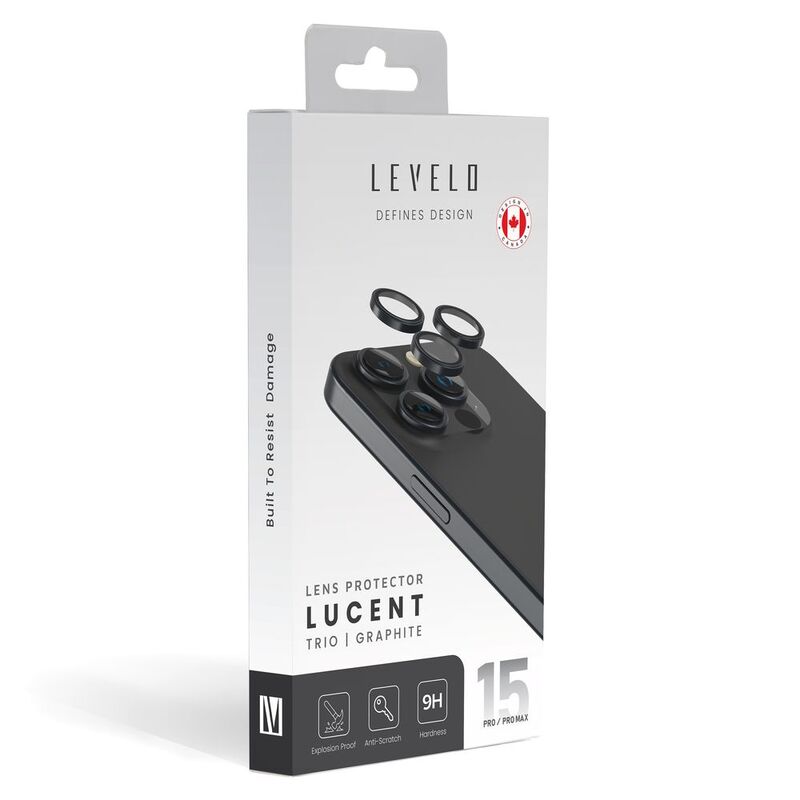 Levelo Lucent Trio 9H Hardness Camera Lens Protector For iPhone 15 Pro/15 Pro Max -Black