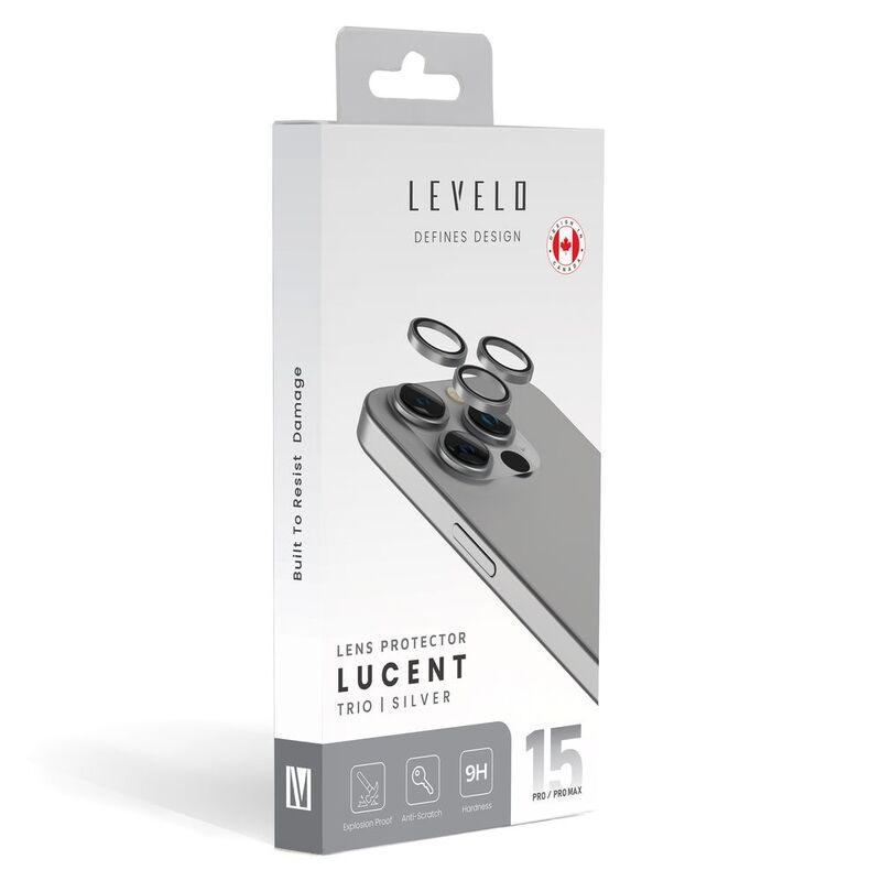 Levelo Lucent Trio 9H Hardness Camera Lens Protector For iPhone 15 Pro / 15 Pro Max -Silver