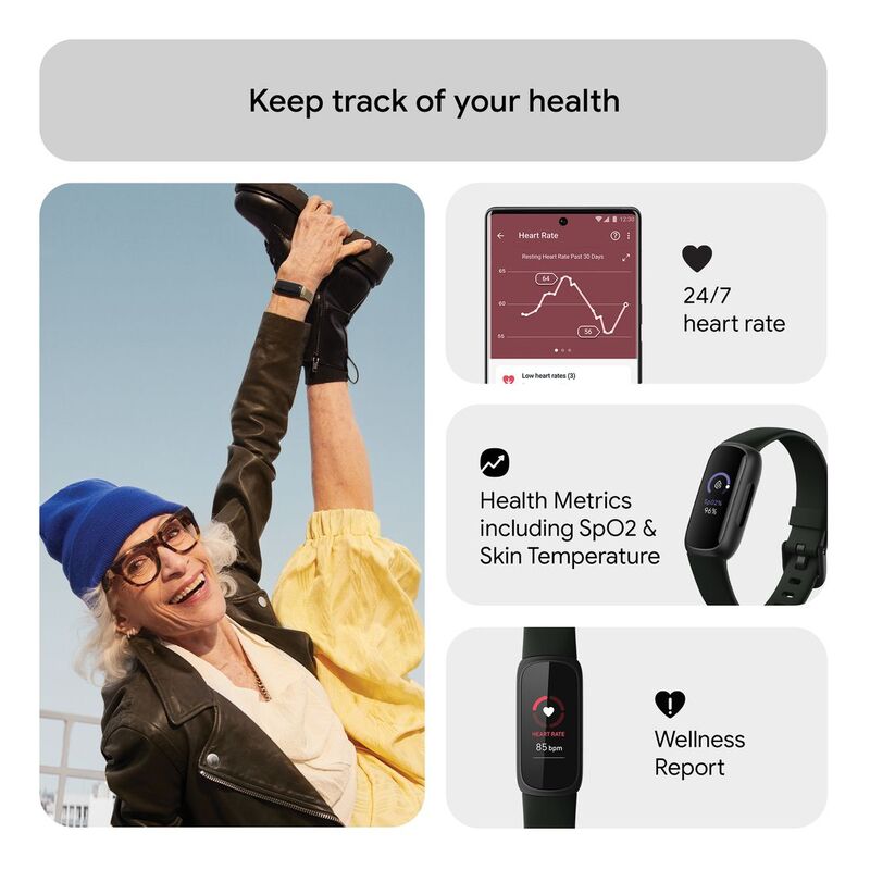 - Move more: 24/7 heart rate, Daily Readiness Score, Active Zone Minutes, all-day activity tracking, 20+ exercise modes, automatic exercise tracking and reminders to move