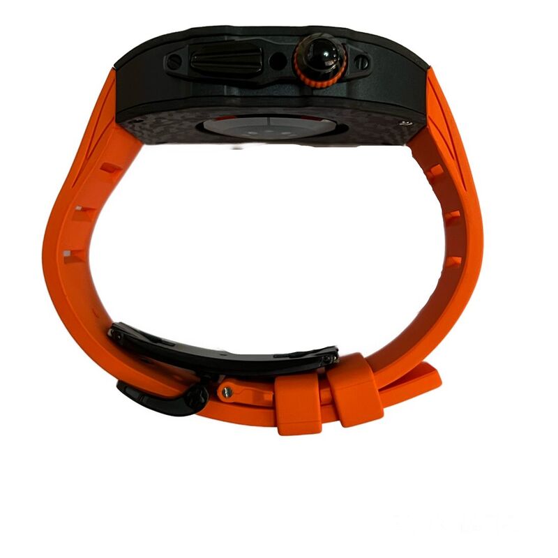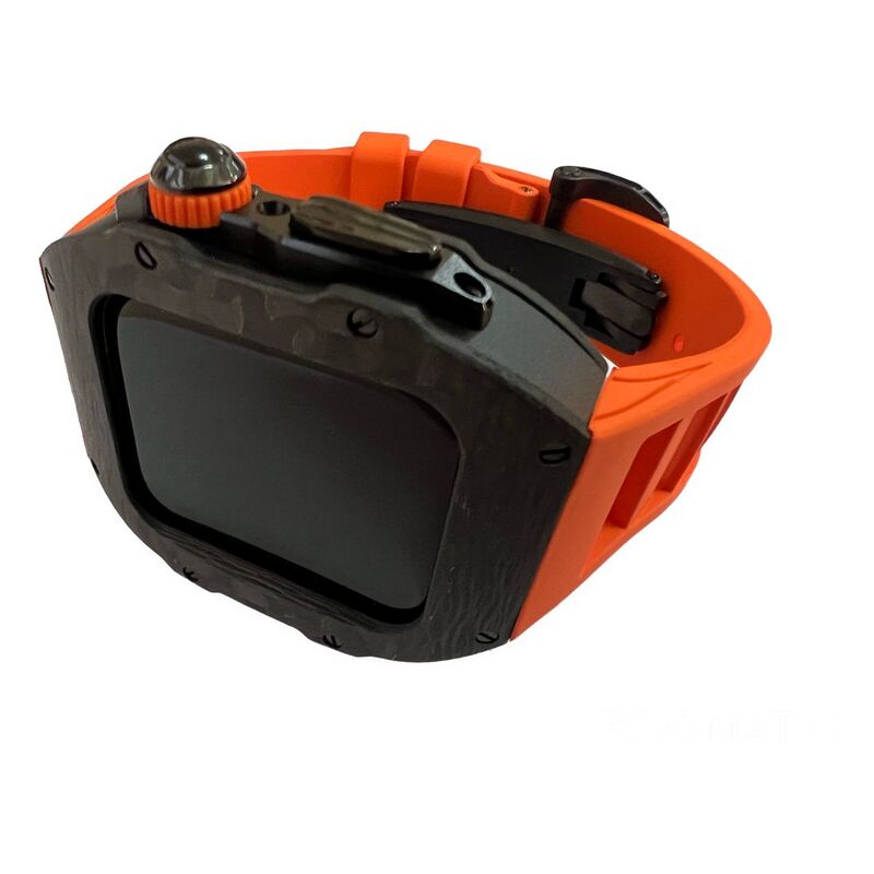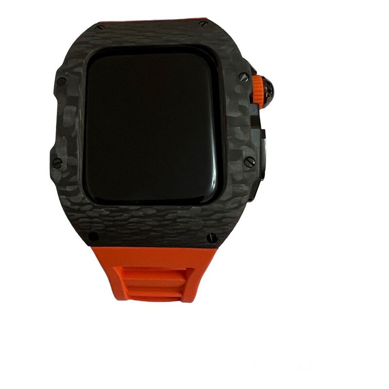 Aurora Concepts Apple Watch Series 10 Carbon Fibre - Black Case With Orange Strap
