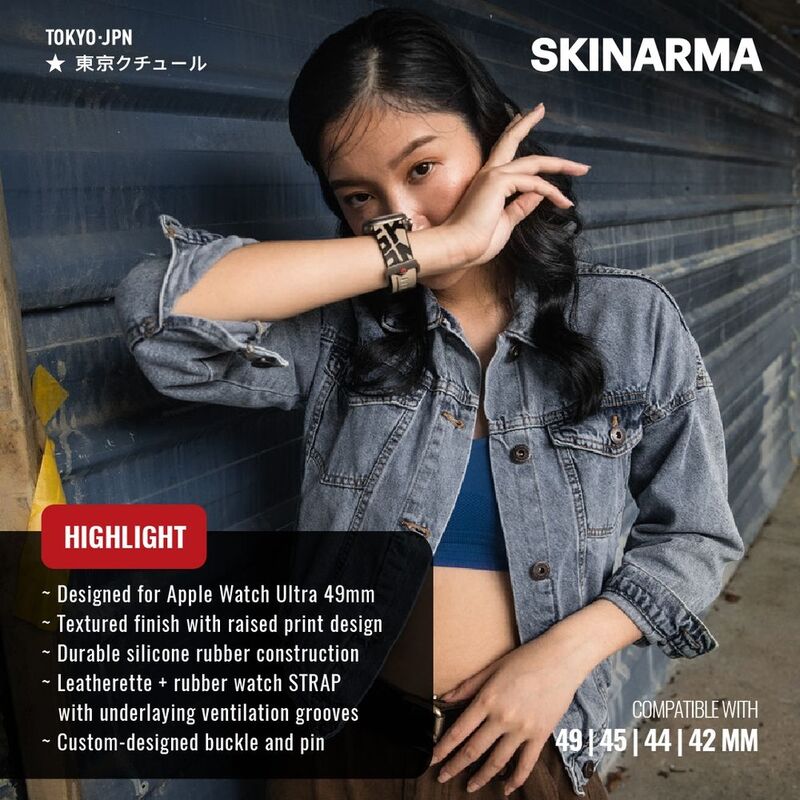 Silicone Rubber Apple Watch Strap Spunk is the latest variant of Skinarma with high-durability silicone material covered with synthetic leather for use in various outdoor and indoor activities with Skinarma-style street fashion that can be used on the Apple Watch Ultra.