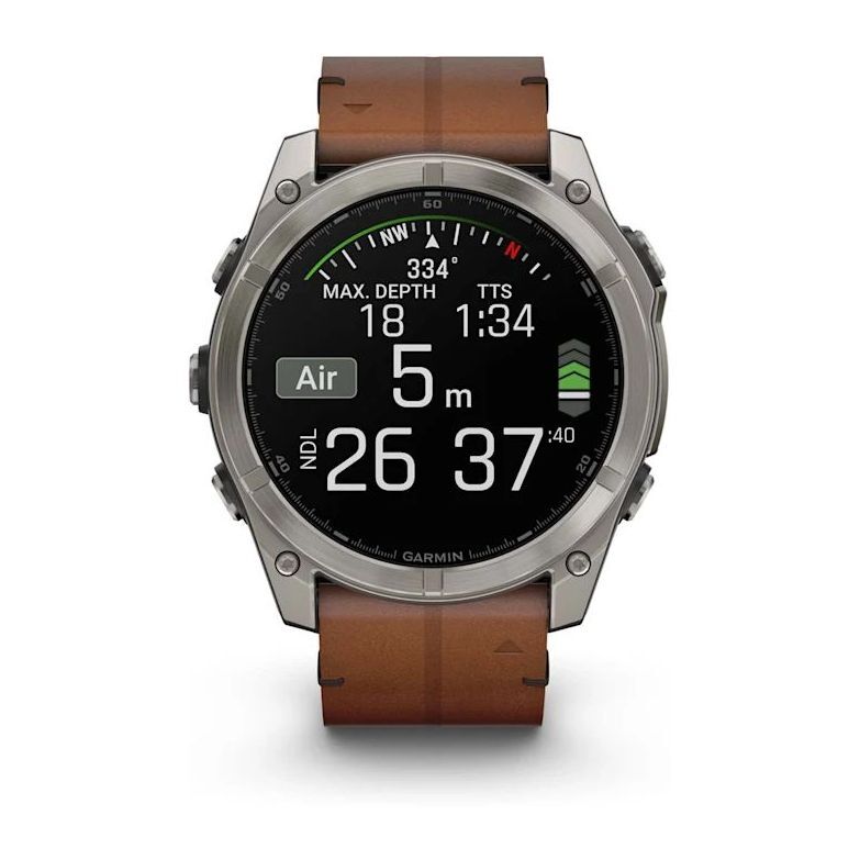 For serious athletes and adventurers who want to push beyond their limits, this premium multisport GPS smartwatch is built to perform — with advanced strength training features, dive capability, an internal speaker and mic for voice features, a built-in LED flashlight and more.