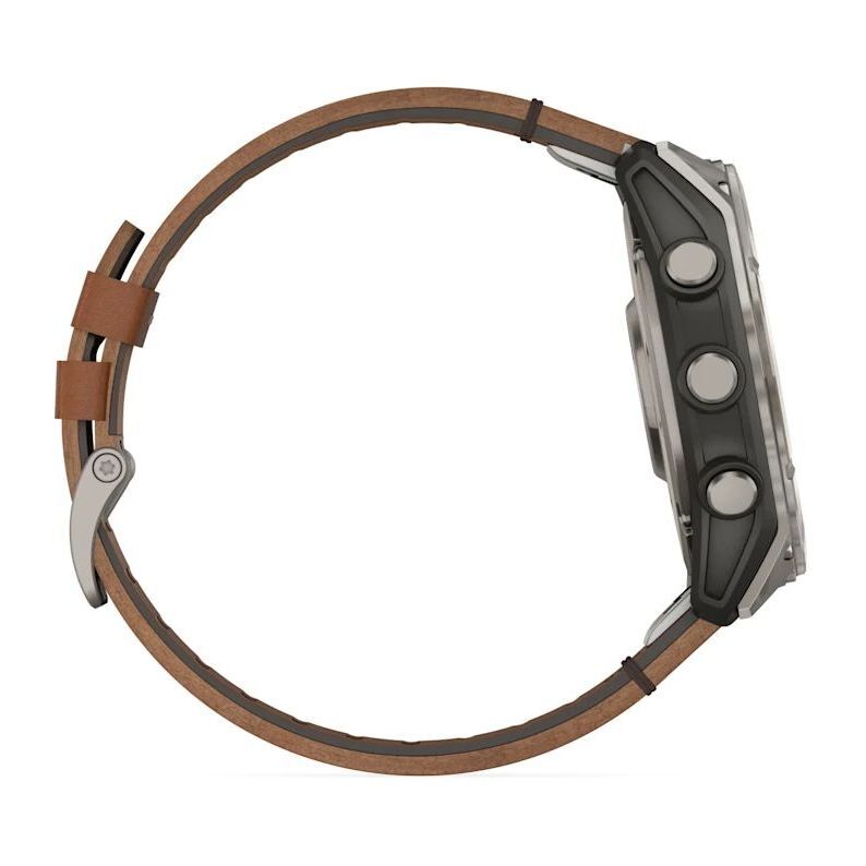 Garmin Fenix 8 51mm AMOLED Sapphire Bare Titanium Black Smartwatch - Chestnut Leather Band + Graphite Silicone Band