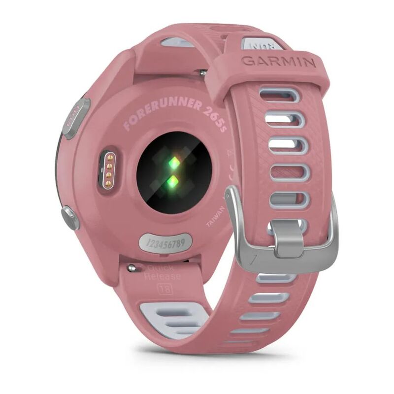 Garmin Forerunner 265S Smartwatch - Black Bezel With Light Pink Case And Light Pink/Powder Grey Silicone Band