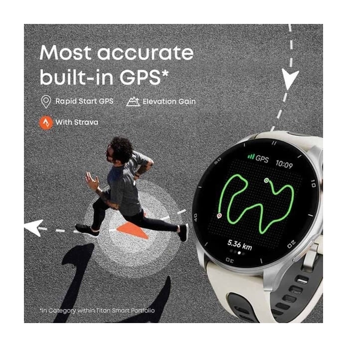 - Titan Celestor comes with a stunning 1.43" AMOLED display, complemented with multiple adaptable AOD watch faces and a brightness of 750 nits.;The high performance smartwatch designed to accompany you on any outdoor activity with inbuilt GPS, ensures that you are always on the right path.