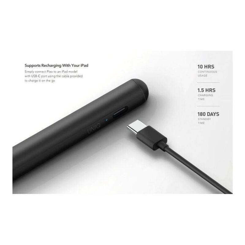 • Take notes, paint or colour pictures, or control your iPad with greater precision. UNIQ PIXO is a magnetic stylus that is guaranteed to meet all your requirements. It boasts up to 10 hours of continuous use, a rechargeable USB-C connector and an ultra-fine tip.